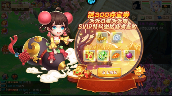 2、首次进入游戏后可领取免费超多极品道具,助你称霸三国战场