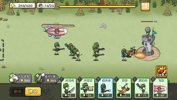 另外,玩家还可转攻为守,等到资源充足可以上阵更多兵种。