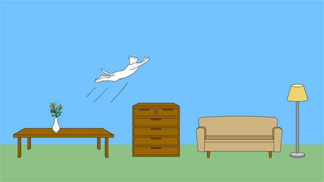 沙发相当于一个凹型的障碍物,猫咪跳上沙发开始奔跑,快下沙发时需要跳跃,不然是下不去的,有的沙发后面还会立个灯柱,所以在沙发上时最好刚上沙发就开始蓄力,这样不管沙发后面有什么都能轻松应对。
