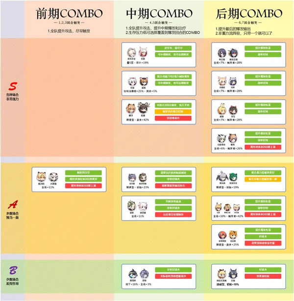 这个游戏有一个COMBO机制,翻译过来就是某特定组合的兽娘一起上场可以获得某种加成。