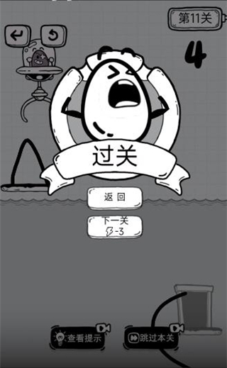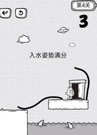2、然后茶叶蛋会在水面上漂浮,大家如图再画一条曲线,然后曲线会带着茶叶蛋一直沉到水底,进入门即可通关。