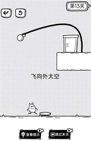 1、首先,游戏一开始茶叶蛋会在空中,这时候大家在空中的平台画线,让茶叶蛋碰到线掉到水里;