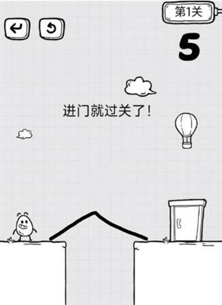 3、然后茶叶蛋跑到中间的弹簧,会被弹起来,之后会碰到空中的线,正好掉到平台门口,进门即可过关。