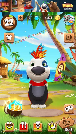 我的汉克狗破解版无限金币无限钻石版是一款非常好玩的休闲益智类游戏,这里有一座全新的神奇岛屿等着你去探索,你可以与动物们交朋友,探索有趣的迷你游戏,或者开始寻宝冒险,找寻收藏品!在我的汉克狗游戏中,邀请你照顾汉克狗,喂他吃美味的热带点心。然后出门去,骑摩托车探索岛屿、和新的动物交朋友。在我的汉克狗破解版里照料你最喜欢的新虚拟宠物汉克狗。喂他吃可口食物,带他上厕所,在星空下摇着小吊床哄他入睡。