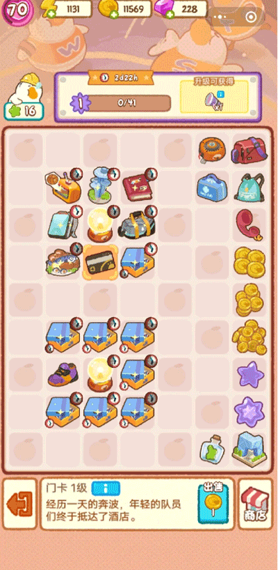 图上可以看到鞋盒有两个时钟标志,右上角大时钟是门卡产出的倒计时,左下角小时钟是鞋盒变成鞋子的倒计时;