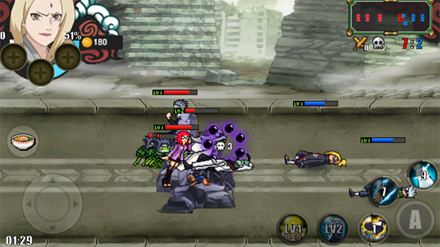 【经验等级】消灭敌方忍者来获取经验提升等级,以提高血量,增强攻击力。