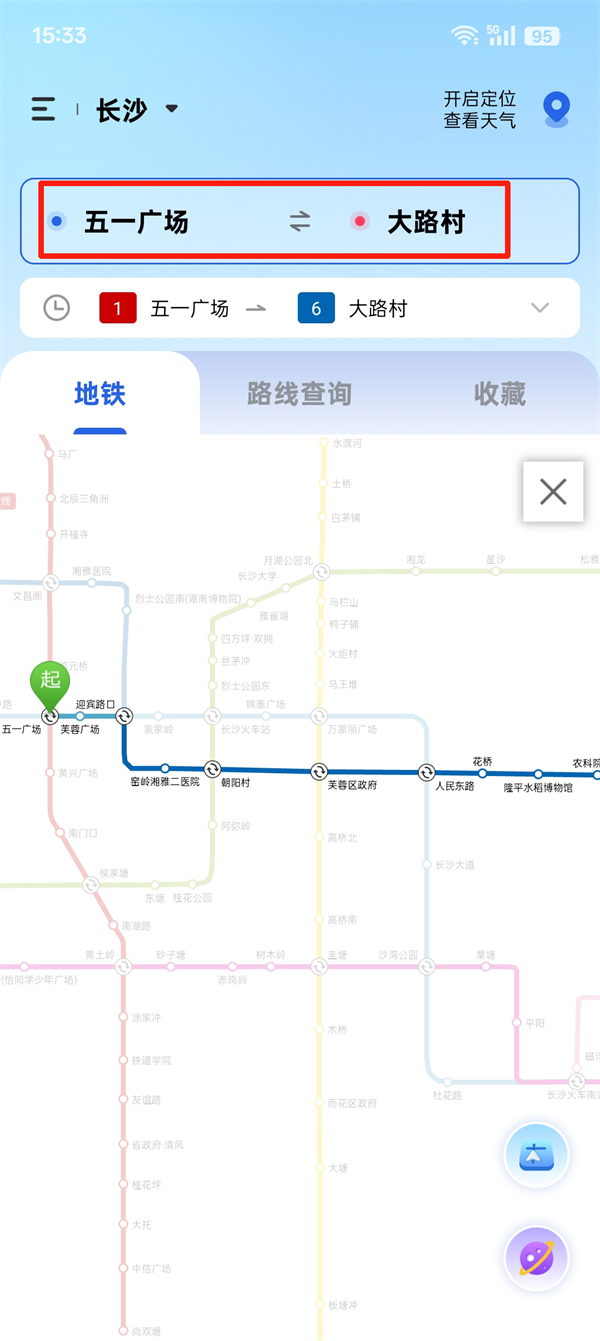 设置起点和终点,查看换乘方案