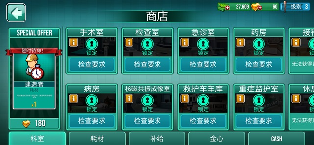 1、首先在我们当快软件园下载好Operate Now Hospital中文版,然后通过游戏屏幕右下角的“购物车”图标。