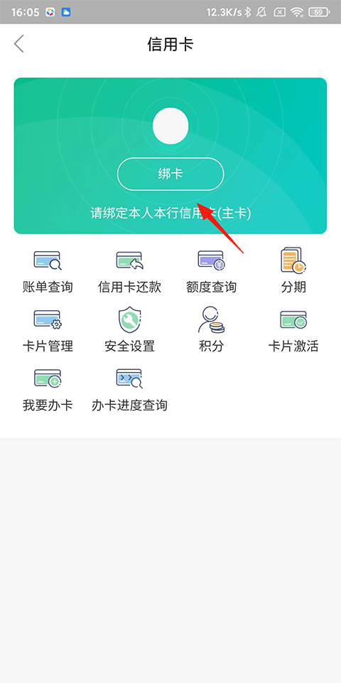 1、打开四川农信手机银行APP,在首页点击【信用卡】;