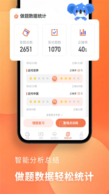 将错题本,笔记本,自学视频,自学音频四大模块科学分类,让你的思绪更加清晰,刷题事半功倍!