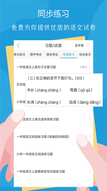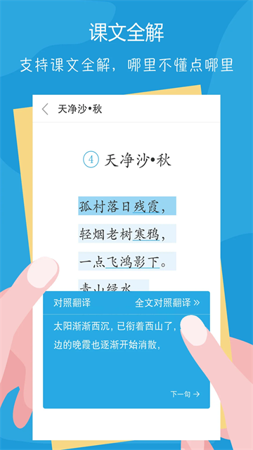 6、权威字典:生字真人发音、笔画演示、字典词典词义解析翻译;支持随时点击课文文字查询