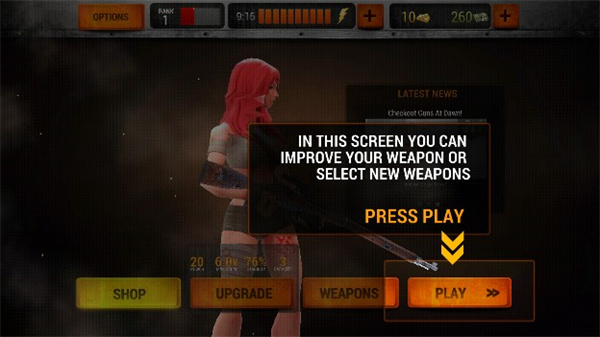 你可以使用几个能量帮助你在战斗中。提高你的目标,停下来的时间,获得额外的能量......如果你想用爆头杀死所有的僵尸,你将需要其中的一些!因为你制作的爆头越多,你赢得的钱就越多!