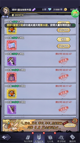 七日登录&在线奖励,真充卡+时装轻松带走;