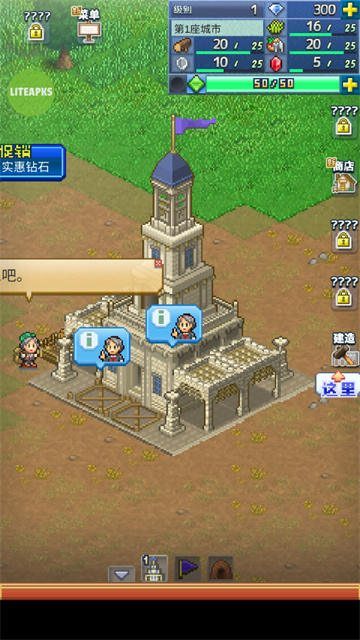 王都创世物语破解版是一款像素风的模拟经营手游,游戏中玩家将扮演一位王国创始者,虽然目前的国家一无所有,但你可以通过自己的规划和布局来进行王都的创建。玩家可以派遣各种小人为你干活,增加你的经验,不断的成长升级你的岛屿,治疗站,商城,建筑等等都能任你发挥,建设属于你的王国。所谓一个国家最重要的就是人民了,所以玩家在建筑的时候一定还要考虑居民的居住环境等因素,因为这些都会影响到你的王国的发展以及繁荣度,王国的创建历史在此刻开启,千万不要掉以轻心,为了你的王国,为了居民们的未来,你一定要认真思考,仔细观察哦。