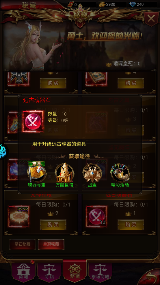 除了这些,游戏还有不少特色,比如画面经典重制、数值良心不膨胀、神魔降临系统靠手速秒杀,而且新版本还提升了画质,免费就能体验。皇冠秘藏商店里有炼狱宽恕、暴风巨剑等物品,花费的都是璀璨皇冠,感觉设计得很合理。