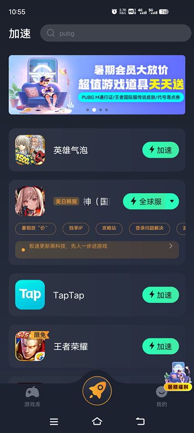 1、首先打开奇游手游加速器,找到英雄气泡,点击右侧加速;