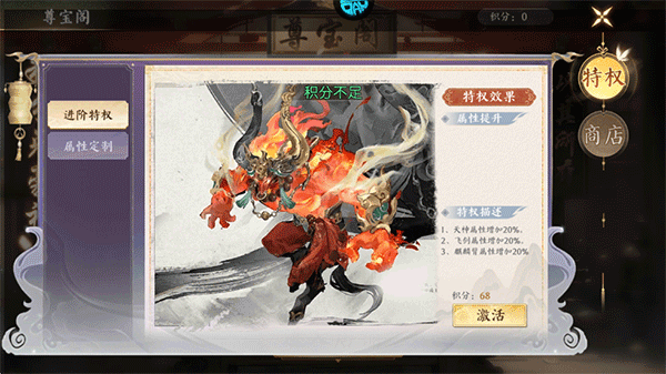 5、尊宝阁;花费积分激活有机会获得高级特权效果;
