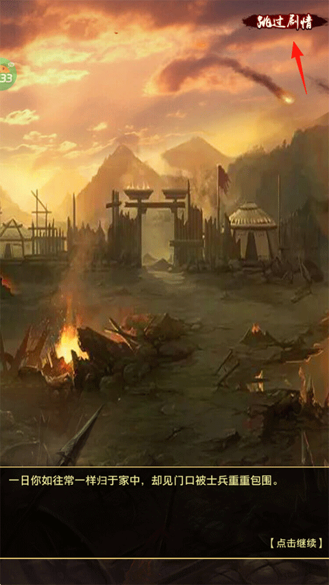 3、游戏前的剧情可以点击右上角跳过;