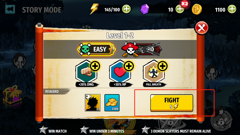 1、进入游戏开始战斗,每局战斗都会消耗体能;