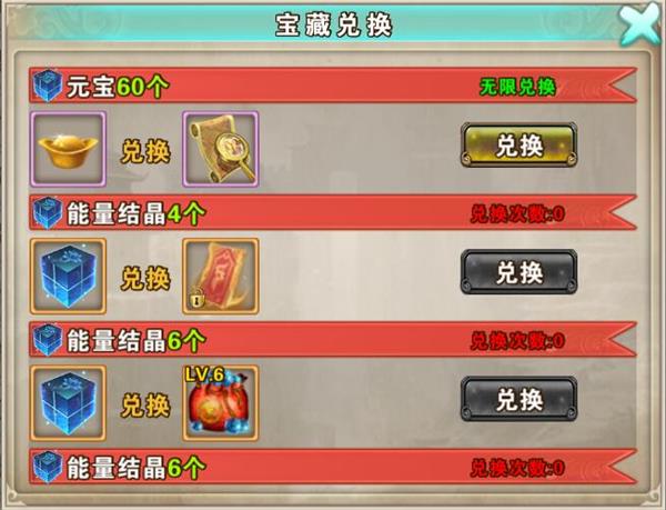 挖宝可获得数量不等的当日种类奖励(每日奖励不同,可与财神对话查看每日奖励),并有几率获得能量结晶,能量结晶可用于在“福利”界面的神秘寻宝中对换道具。