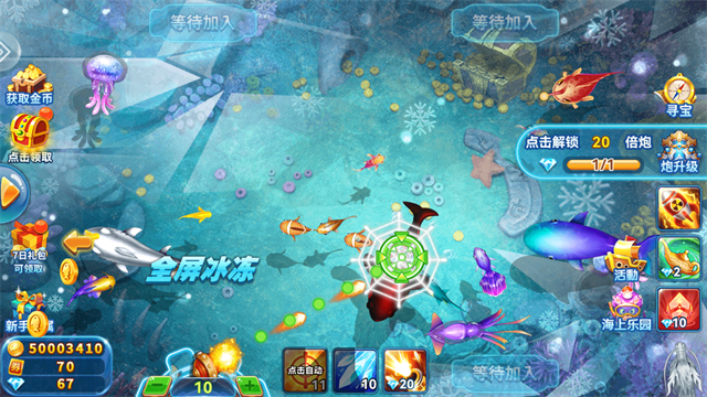 3、进入渔场,这里支持三人组队进行捕鱼。