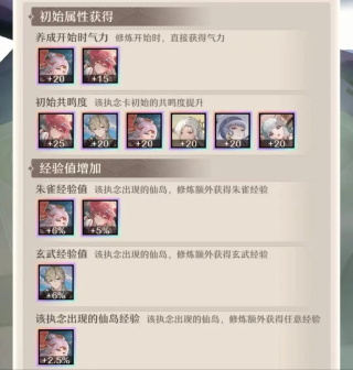 ②功法修炼效果:每个弟子都具有十分独特的功法加成数值,其主要反映在修炼成长数值增长。如湘湘的青龙、朱雀属性成长十分显著,这驱使她的流派定位为输出,因为青龙主属性为敏捷,朱雀主属性为气力。具体的属性加成的具体数值可继续食用下文。