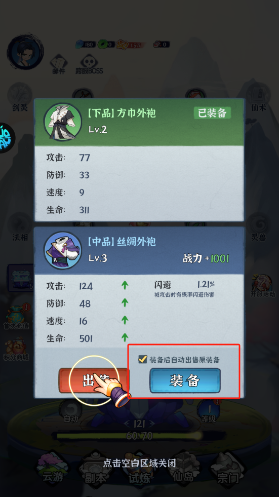 2、抽中更高级的装备,可以将原先穿戴的装备出售;