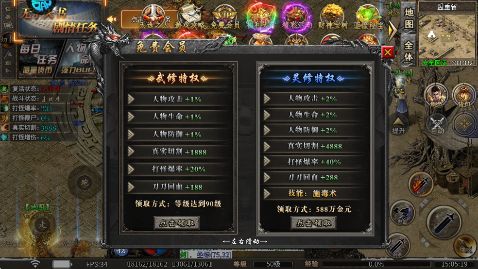 4、PK打架可提升左手神器,获取大量攻速加成以及巨大属性,PK必点