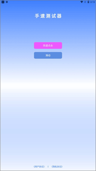 1、打开手速测试器后,在首页中选择“快速点击”和“滑动”模式进行测试