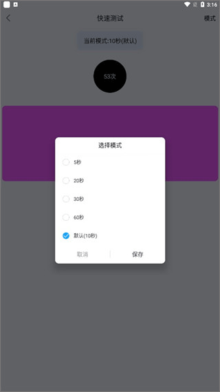 app设有10秒、30秒和60秒等挑战难度关卡。