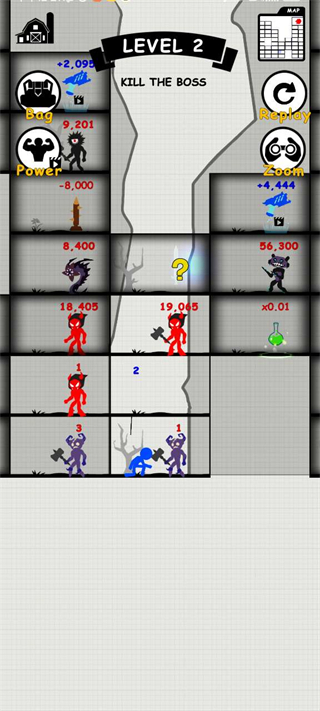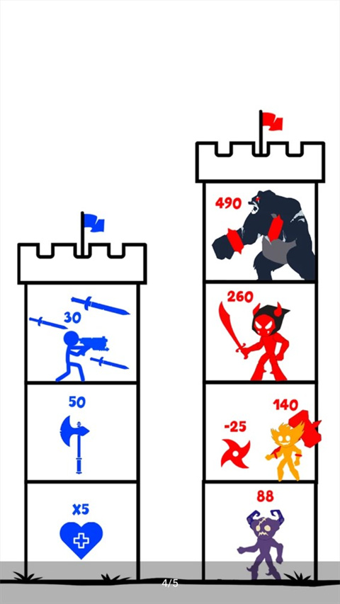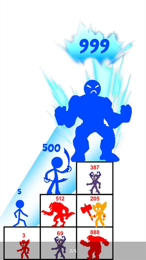 相信很多朋友在刷抖音的时候总是会碰到很多小游戏广告,看着很好玩但是点进去之后发现是另一种游戏,今天小编就给大家带来一款和广告宣传一模一样的手游:火柴人战斗无尽战争。游戏玩法十分简单,玩家控制等级为1的小人去进行挑战,你只能去挑战数字比自己低的敌人才能获得胜利,挑战比自己高的数字智能失败重来,战胜对方之后会获得对方的数字来提升自己的等级,最终去击败大魔王来获得游戏胜利。