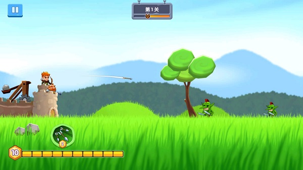 游戏模式采用了常规的关卡制,不同主题的战斗场景,可缓解玩家们的视觉疲劳。操作方法也是简单易懂,点击瞄准敌人出现的位置,即可释放弓箭,其中命中怪物头部位置可以一击必杀。随着战斗难度的升级,提升战力,保卫村庄的重任尤其重要。每次闯关成功都有系统奖励,积攒金币、钻石可以在“强化”界面中,提升英雄的力量,强化城墙血量,有效阻止怪物的入侵时间,期间你还能雇佣随从协助你一起阻挡怪物的进攻。