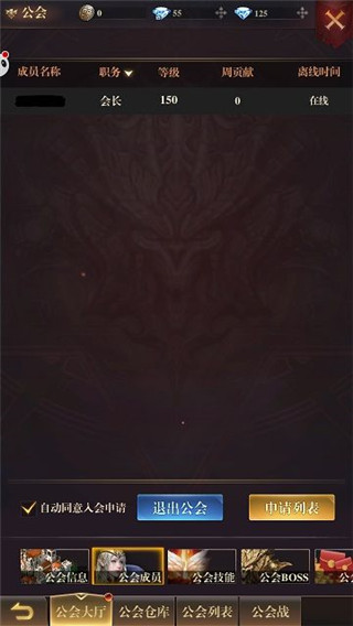 再来看看公会的各项功能。公会仓库可以让成员互通有无,更换装备;公会技能可以增加角色的各种属性(攻击、防御、生命、命中、闪避、元素攻击);挑战公会BOSS(每天20:00-22:00开启)可以获得装备、金币,公会贡献等奖励。