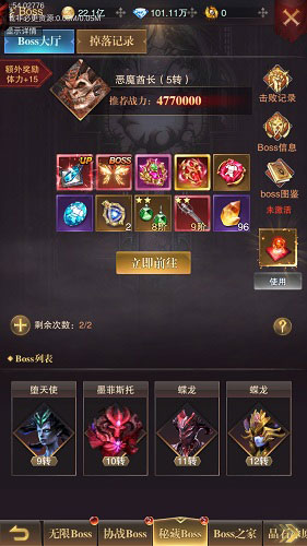 秘藏BOSS是《黎明召唤》的PVE玩法之一,有多个BOSS供玩家挑战,每个BOSS都有转生次数限制,玩家完成转生任务即可挑战对应的BOSS。