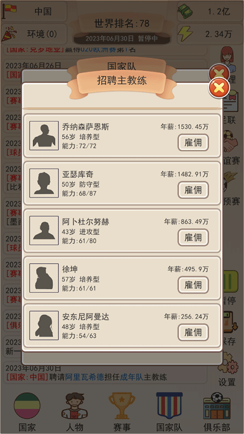 这款《足协模拟器》文字放置类游戏让我感觉挺有意思的,玩家可以扮演足协主席,接手中国足球,带领它重回巅峰甚至冲击世界杯。玩法简单又有趣,点击操作就能完成各种改革任务,比如招募球队、挑选球员、组建国家队和青训等。游戏中还有多种模式可以选择,比如自己制定的特殊模式,可以自由发挥。