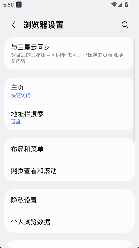 2、可在三星浏览器设置中启用高对比度模式,适用于需要增强对比度才能更舒适地查看网页的人群,如视力受损用户。