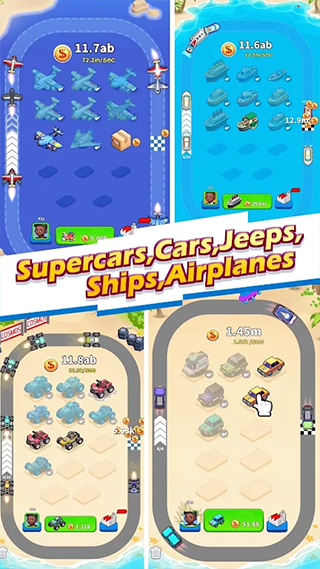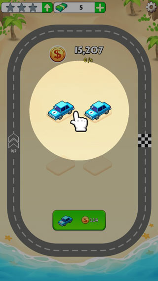 - 通过合并将载具升级,并将载具放置到赛道上获取现金奖励;