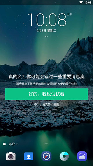 Next Lock Screen是来自微软官方的Android 锁屏应用,又名:Next屏锁。它是一款专为忙碌专业人士定制的终极锁屏,您无需解锁屏幕即可访问应用,可以在锁屏界面显示日历、未接来电、推送消息,并且还可以切换工作、在家状态以显示不同的应用在屏幕上。Next Lock Screen 的切换模式和智能切换模式的启动器Yahoo Aviate Launcher比较类似,不同的模式下会在锁屏底部显示不同的应用。下一步有助于保护您的手机免受他人不必要的访问,您可以立即提高工作效率,它是一款出色的生产力储物柜应用程序,适合您的日常生活。