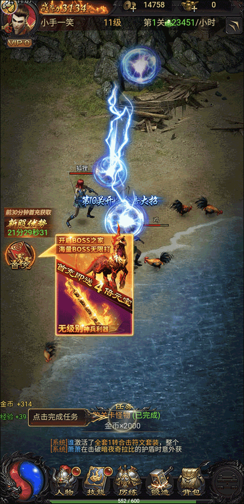 2、接着,在游戏中需要不断的升级,打怪才能获得更高、更强的游戏体验;