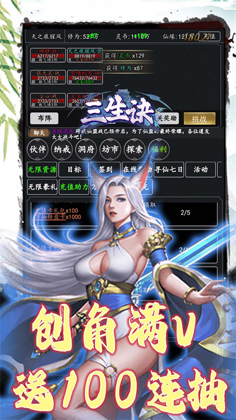 这里给大家带来的是三生诀0.05折版,此版本充值永久0.05折,创角就送满v、100连抽,登录就送万元充值、绝世红卡,助你开局快人一步。感兴趣的小伙伴快来下载体验吧~
