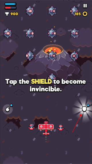 3、面对众多炸弹陷阱的时候就需要点击右边的盾牌进行防御。
