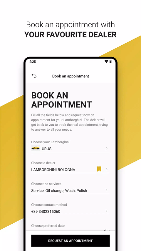 值得一提的是,当兰博基尼推出全新车型时,现有车主可以在官方发布信息前24小时就能得到专属内容,还可预览上市车型的所有特征。以及日常车辆使用时候的保养服务等,更会通过个人专属通知进行单独推送,当然用户也可以自主定制需要的服务类别、首选日期和联系方式,并向不同的售后业务部门进行预约。