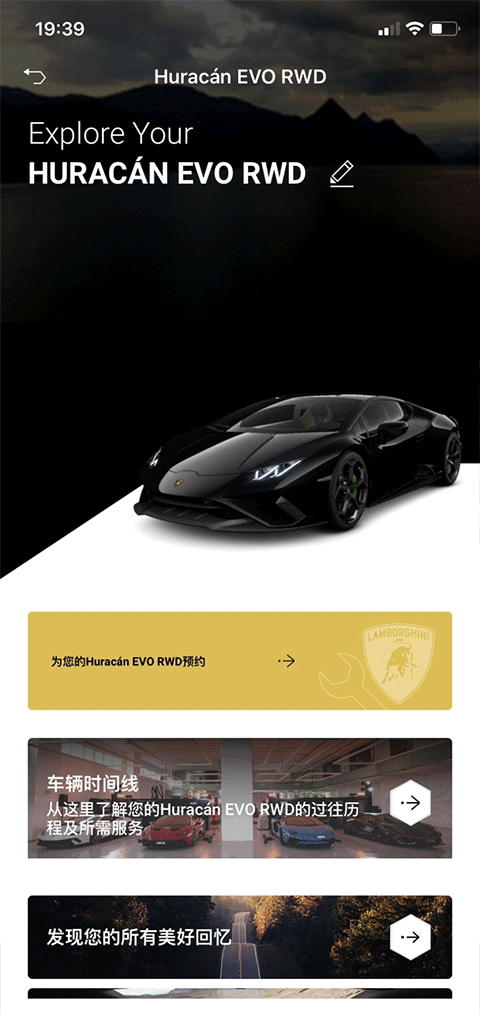 1、兰博基尼app的基本功能就是自己车的情况和其他兰博基尼车款介绍
