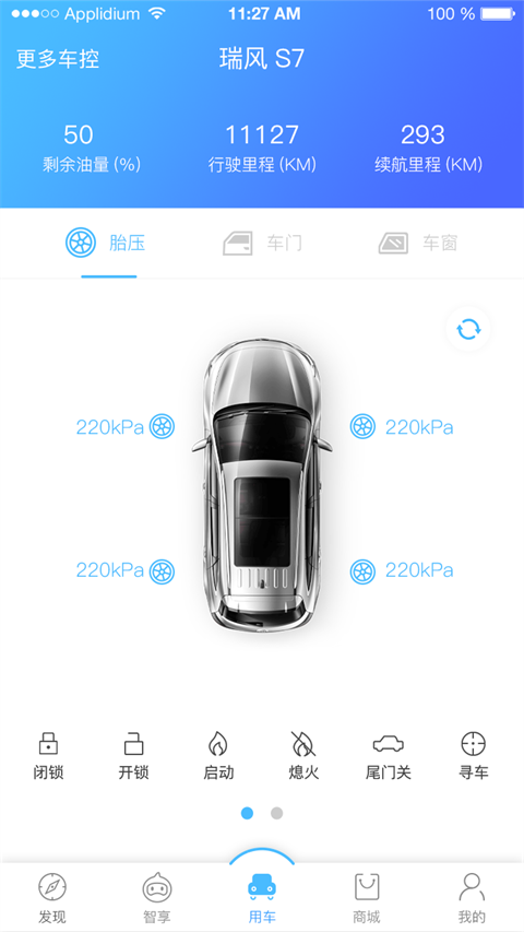 江淮汽车APP包含了丰富的车控功能,包括车况查询、空调、座椅、车窗、远程点熄火、远程寻车、远程开闭锁、电子围栏、途记宝等20项车联网相关的功能,可以为您智能安全用车提供更好的服务。