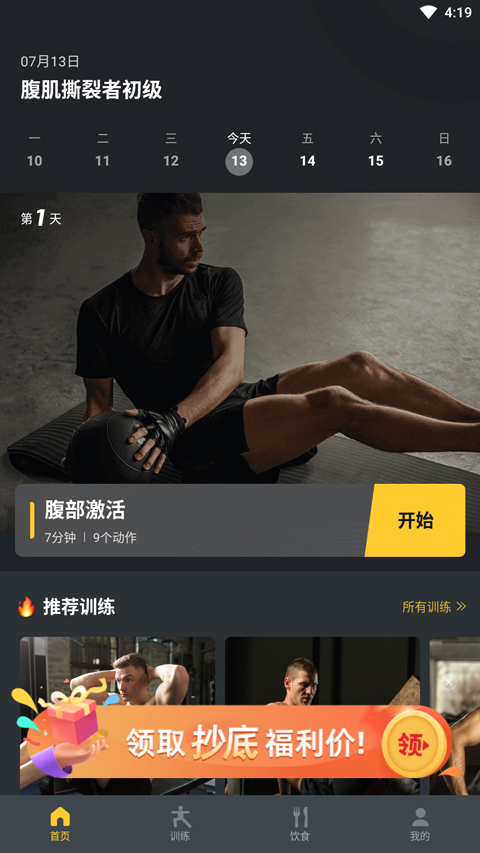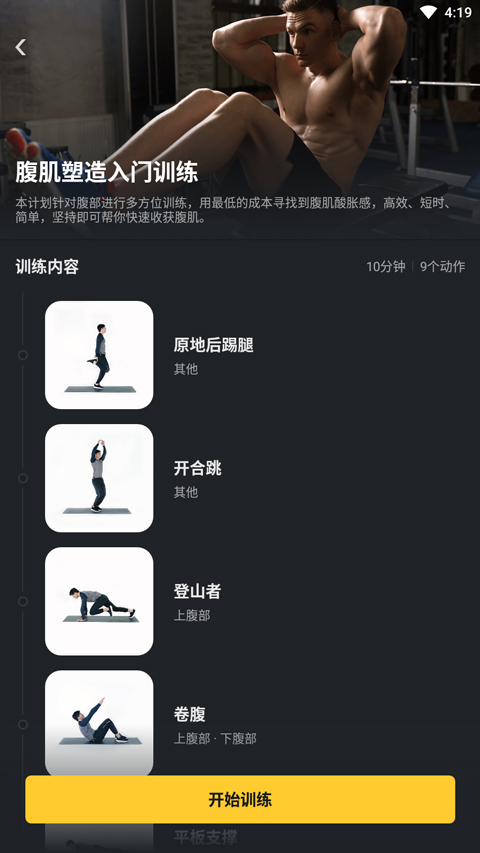 3、点击训练,这里有着很多腹部训练计划;