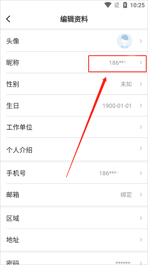 3、在“编辑资料”中选择“昵称”。