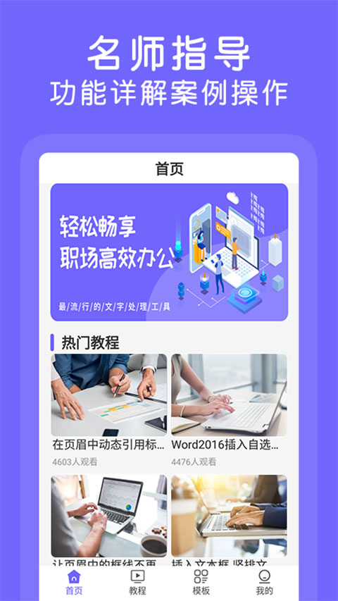软件里有各种各样的模板,比如简历、工作总结、合同范本等等,完全满足我的日常需求。而且教程内容从基础到进阶都有覆盖,无论是职场新人还是资深人士都能找到适合自己的学习材料。我最近在学习制作精美的PPT,这个app的图文并茂教程也让我受益匪浅。