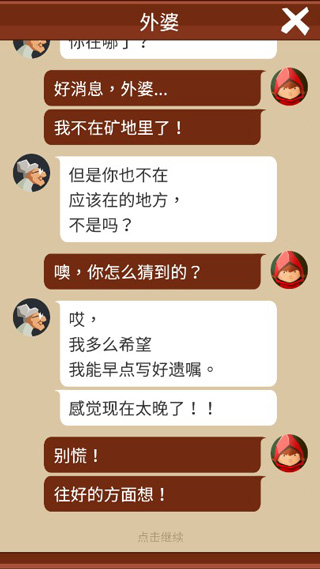 此外,游戏中还拥有特殊的道具和“外婆”给予的无限提示,点击“足”即可返回上一步的操作,点击炸药能够破坏场景内容的固有障碍,而点击“外婆”即可得到外婆的协助,外婆会告知你下一步的具体行动。