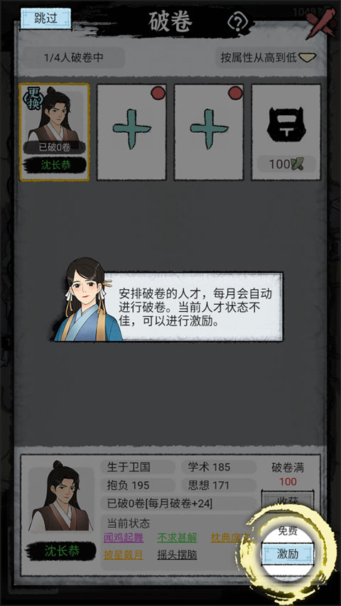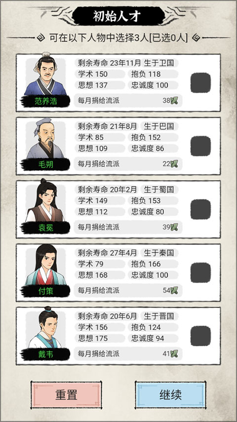 2、招揽门生 — 各势力之间的人才特点均有差异,有的注重学术,有的注重思维,有的则注重抱负,作为一派之首,在不同的阶段引进合适的门生,也能提高学派的竞争力。