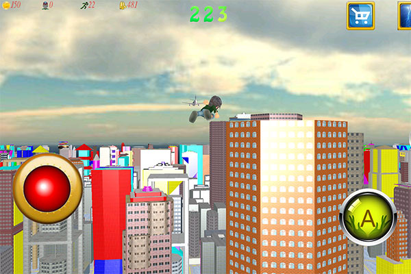 1、按一下A键是跳跃,如果不按虚拟摇杆,是可以原地跳的。按了虚拟摇杆,是根据虚拟摇杆指向的方向跳,有些玩家怕跳不到下一栋楼,喜欢走到楼顶边上才跳,人已经走到楼外面了,往下掉了才按下A键,人在空中怎么跳呢?当然是跳不成了,其实用不着这么严格,距离楼边两个主人公身高的位置起跳,都是没有问题的,即使没有跳到下一栋楼的楼顶上,也会落在楼的墙面上,小明会自己跳上楼顶。